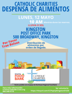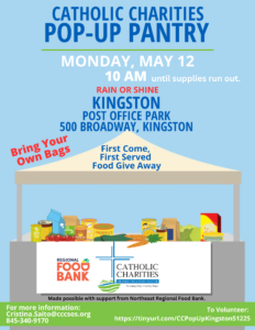 For more information about the May 12 Kingston Pop-Up Pantry, contact Catholic Charities at 845.340.9170 or email Cristina.Saito@cccsos.org.