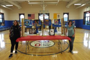 Showing off the CYO Art and Essay contest “Best of Show” winners at the art show and opening night reception at Catholic Charities’ Ulster County Community Center are art teachers Melissa Cascio (left) from Kingston Catholic School and Lauren Hollick (right) from John A. Coleman High School. The winners went on to be judged at the Archdiocesan level.